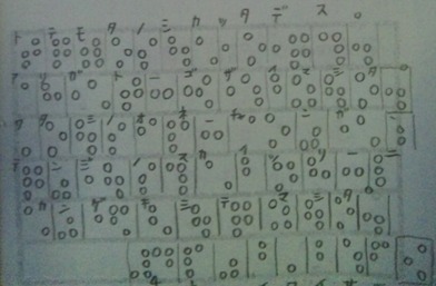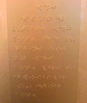 アメリカ合衆国のラガーディア空港で点字を見つけました。パソコン利用者のために搭乗ゲート待合エリアに設置されているものです…点字は2級英語表記でした。 |