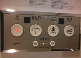 羽田空港国際線ターミナル4階、江戸小路にあるトイレで点字を見つけました。入口の大きな看板の下部に点字の案内図、個室内の温水洗浄便座の操作盤にも点字がありました。 |